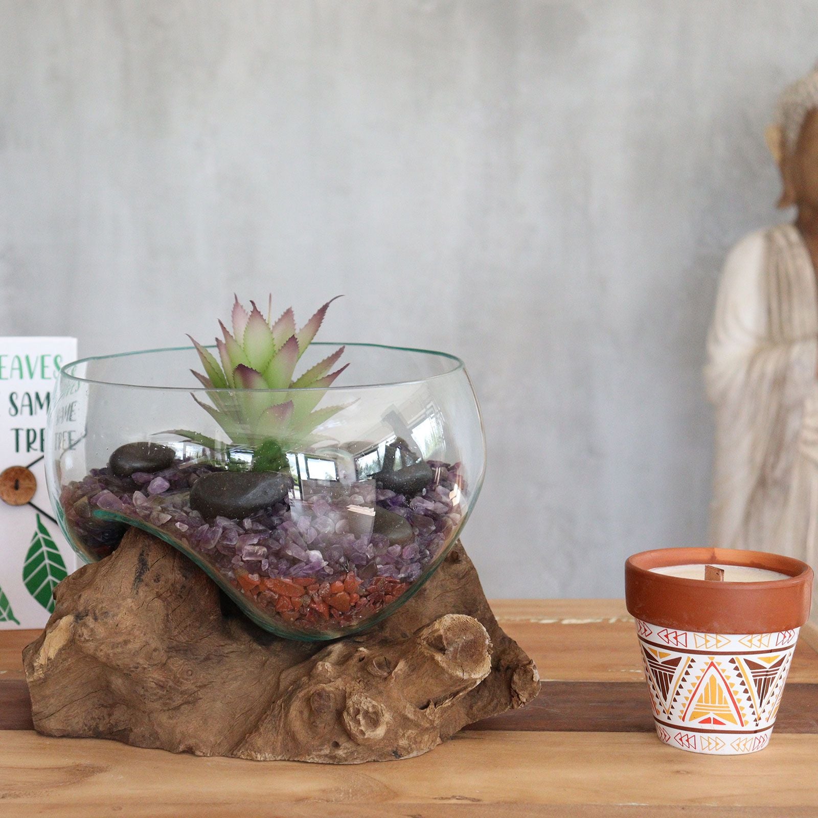 Handmade Melted Glass on Wood Vase | Balinese Recycled Glass & Gamal Wood | Eco-Chic Home Décor