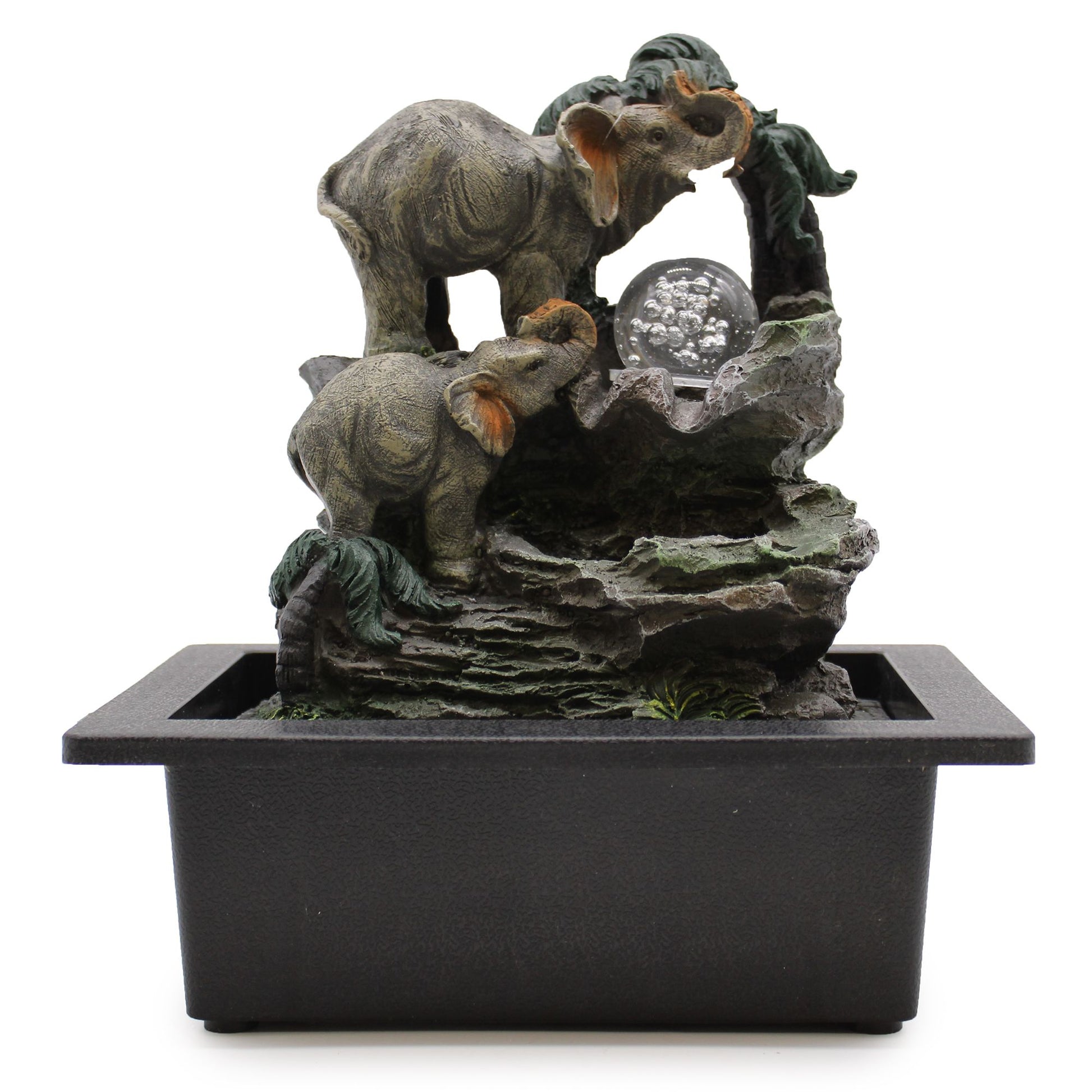 Tabletop Water Feature 30cm – Elephant Family | Indoor LED Relaxation Fountain for Home & Office